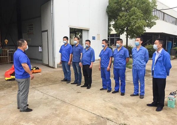 6月18日上午,昌利員工在總經(jīng)理的帶領(lǐng)下,對(duì)突遇液氨泄漏時(shí)應(yīng)該如何處理一一詳細(xì)地做了演練。生產(chǎn)部洪經(jīng)理告訴大家:“突遇事故時(shí),救人是第一原則,但是要實(shí)現(xiàn)快速的搶救,就需要我們通過練習(xí)來加快反應(yīng)的速度。做到救人的同時(shí)保護(hù)好自己。所以大家要多熟悉,都要親自來演練,做到心中有數(shù),這樣遇到突發(fā)事故時(shí)就不會(huì)慌亂。”